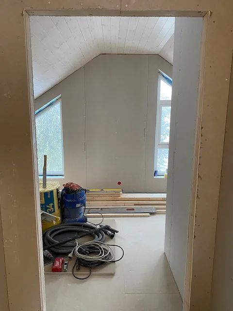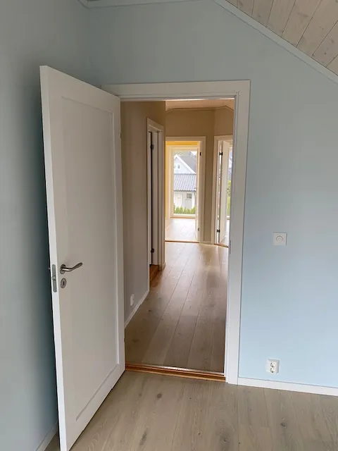 Her ble det satt på nye takstoler på eksisterende bolig. Den nye etasjen ble innredet med 4 soverom og et flott bad.